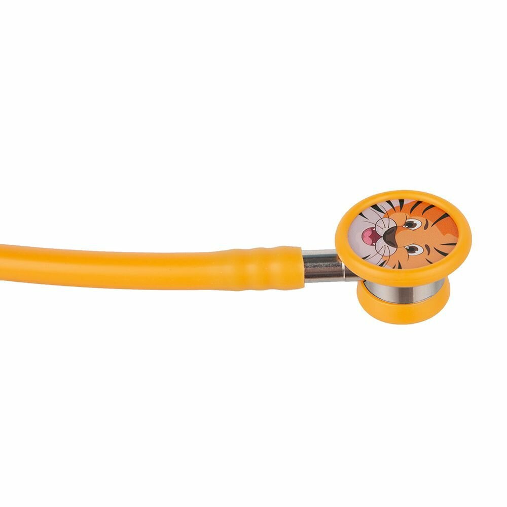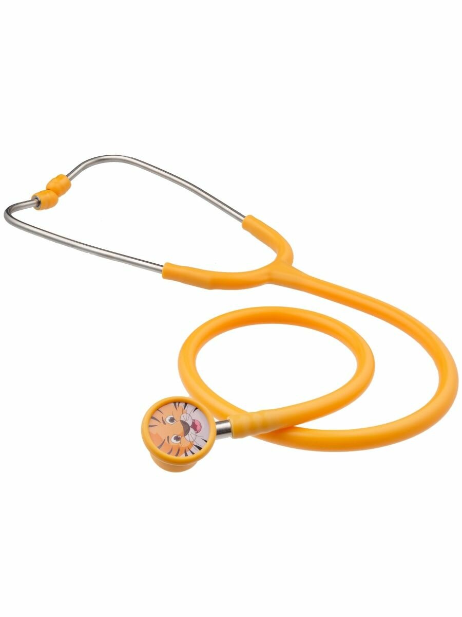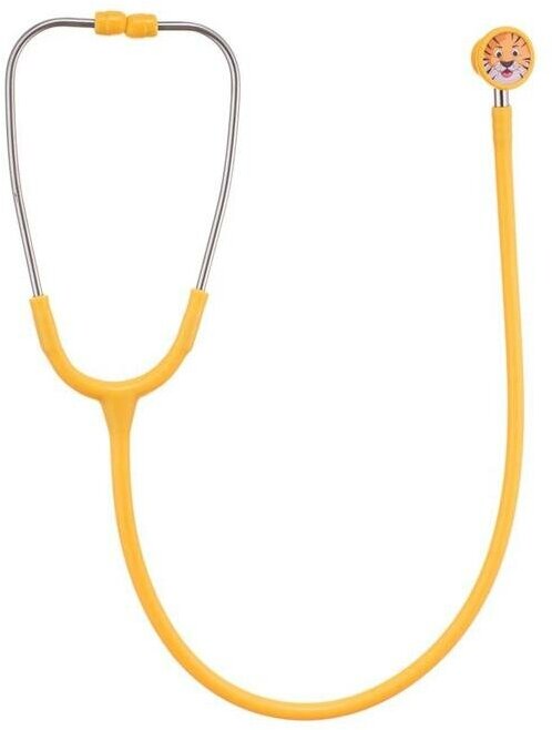 Колокол и диафрагма уменьшены в диаметре – специально для выслушивания маленьких детей, а наличие пластиковых ободков не вызывает чувство холода у малышей при осмотре. Яркий дизайн прибора отвлечет ребенка от неприятной процедуры. Комфортная длина звукопровода – 62 см, позволяет проводить осмотр с комфортом и для врача, и для пациента.