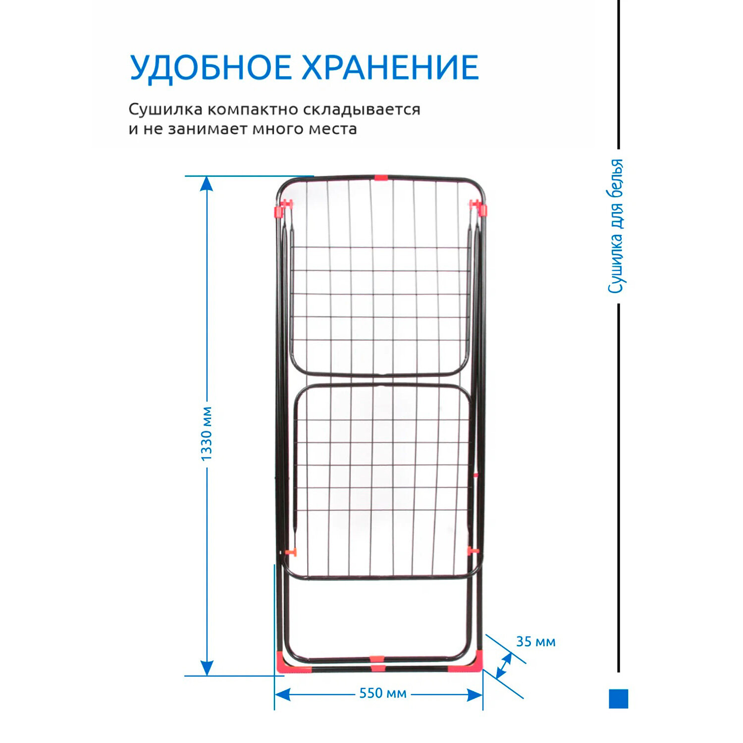 | Особенности | Общая длина бельевых реек 17,5 м. Размер в сложенном виде ВхШхГ: 94х55х7 см |