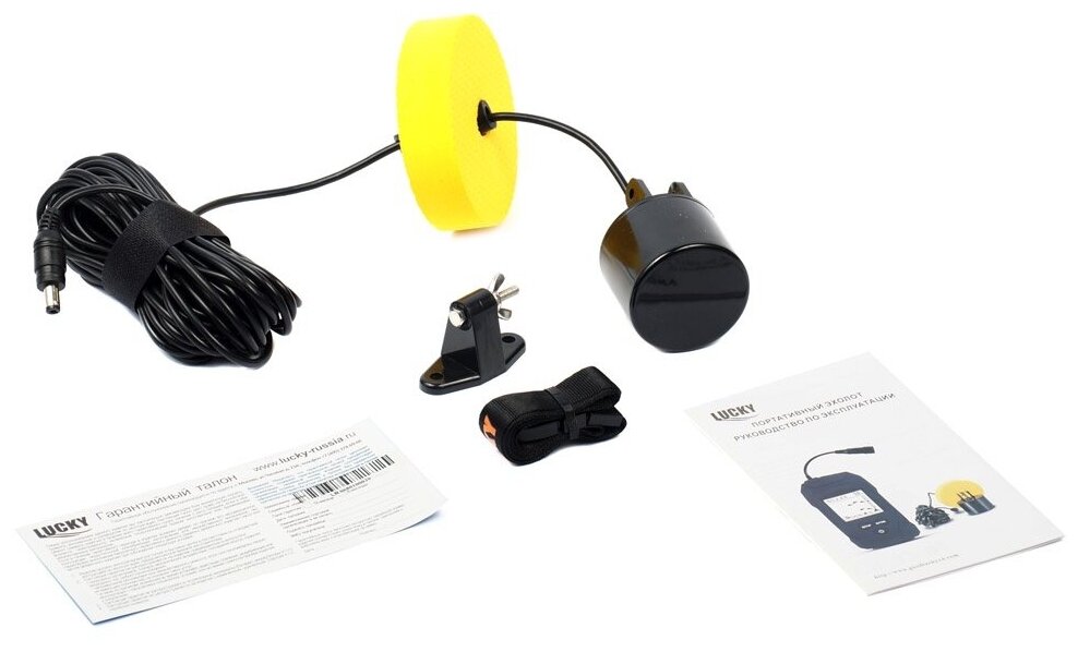 | Описание комплектации | Прибор эхолота с монитором Датчик-сенсор на кабеле 7,6 метров Съёмный поплавок с фиксатором Лодочное крепление Болт с гайкой-барашком Инструкция Шейный ремешок Коробка |