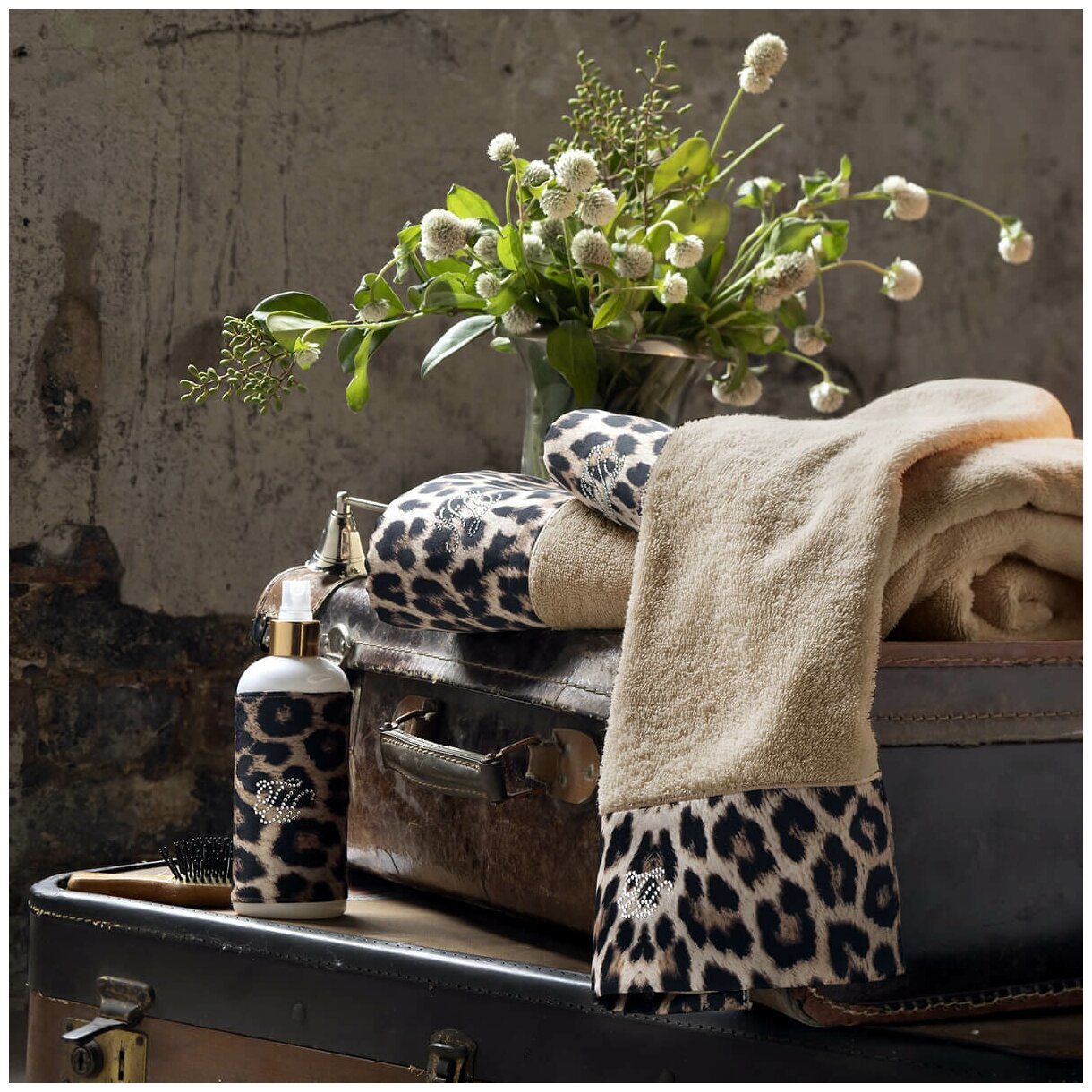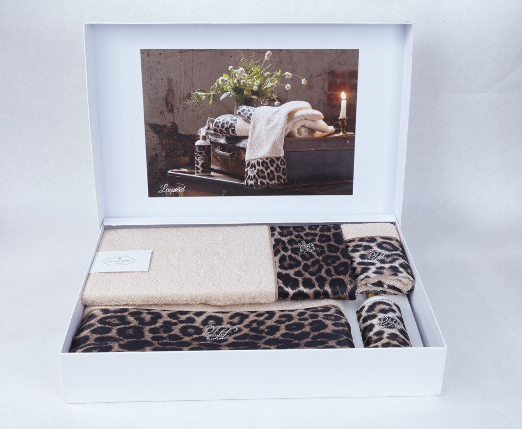 Изысканный комплект махровых полотенец класса люкс с ароматическим спреем в комплекте настраивает на релакс, спа-отдых и ароматерапию. В комплект входит три полотенца: 30x50 см, 50x100 см, 75x150 см и ароматический спрей с тонкими нежными ароматами, а так же эластичный чехол для спрея, в дополнение к дизайну. Полотенца выполнены из высококачественного хлопка, обладают пушистым нежным ворсом прекрасно впитывающим воду и бережно ухаживающим за кожей. Каждое полотенце дополнено с одной стороны гладким бортиком с легким благородным переливом, оформленным кантом-вышивкой и логотипом из переливающихся страз. Комплект упакован в фирменную подарочную коробку.