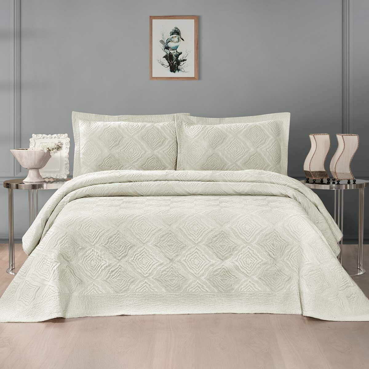 Покрывало 230х250 и 2 декоративные наволочки Arya home Reyna капучиноПокрывало Arya Reyna выполнено из высококачественного полиэстера, который на вид и ощупь не отличается от хлопка. При этом полиэстер - такой вид ткани, который состоит из полиэфирных волокон. Благодаря этому ткани из полиэстера легкие, прочные и износостойкие.В наборе покрывало и 2 наволочки 50х70+5.Состав: 35% Хлопок, 65% Полиэстер.Более 25 лет компания «ARYA HOME» занимается оптовой и розничной продажей текстиля для дома, успешно укрепив свои позиции на рынке и завоевав репутацию лидера турецкого текстиля для дома из высококачественных материалов.Преимуществом компании является большой ассортимент товаров, представленных на сайте и в салонах компании, а также их разделение по стилистике и ценовому сегменту. Это дает возможность широкого выбора, исходя из индивидуальных вкусовых предпочтений и уровня дохода покупателя.Безупречное качество производства обеспечивается профессионализмом и квалификацией специалистов, которые производят продукцию на крупнейших турецких фабриках, имеющих высочайшую репутацию и оснащённых современным высокотехнологичным швейным оборудованием.