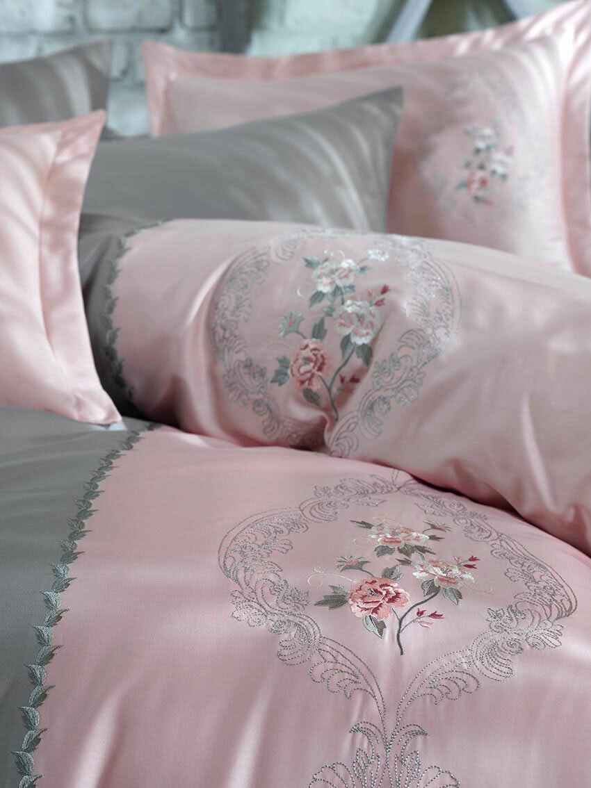 В комплект входит:пододеяльник 200х220 см,простыня 240х260 см,наволочки 50х70 см- 4 шт.Размер - 2 спальный (Евро)Тип ткани - сатинПлотность - 120 г/м2,Состав - 100% Хлопок.Страна-производитель: Турция Достойную конкуренцию тканям из шелка составляет сатин. Постельное белье из сатина необычайно мягкое, гладкое и нежное. На таком белье приятно спать и зимой и летом, т. к. оно обладает хорошей воздухопроницаемостью и терморегуляцией. Сатин экологичный материал, обладающий антибактериальными и гипоаллергенными свойствами. Благодаря чему такое постельное белье подходит для всех людей, в том числе и особо чувствительных. Дизайнеры производителя позаботились о том, чтобы постельное белье было не только качественным, но еще и красивым. При этом белье сохраняет свое красоту и после многочисленных стирок. Постельное белье ISABELLA украшено нежной красивой вышивкой. Такой комплект приятно преобрести не только для себя, он станет достойным подарком на торжество: День рождения, новоселье или свадьбу. Побалуйте себя и своих близкий. Вы этого достойны.