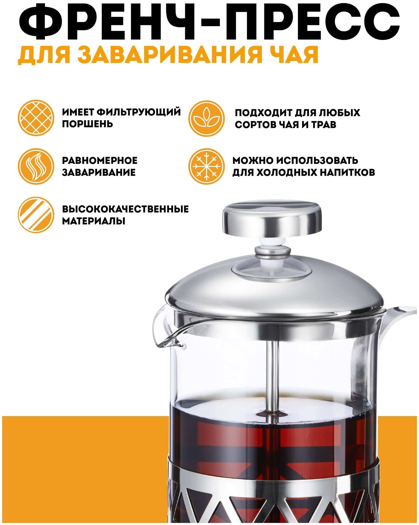 Френч-пресс с зеркальной полировкой Regent изготовлен из высококачественной нержавеющей стали и жаропрочного стекла. Форма его носика идеальна для наливания напитков, а оригинальный внешний вид отлично впишется в любой интерьер современного помещения. Кроме того, данная модель оснащена не нагревающейся ручкой, что обеспечивает удобство и безопасность использования. Объем составляет 600 мл.