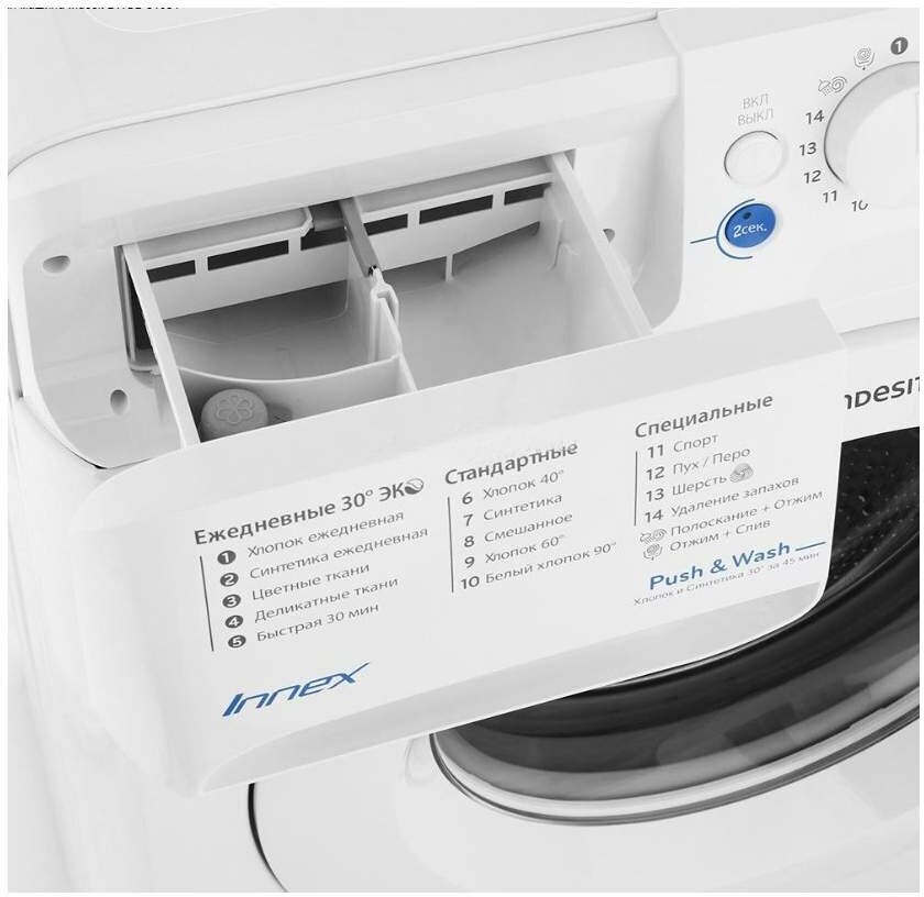 Стиральная машина Indesit позволяет одновременно загружать до 5 кг белья. Экспресс цикл всего за 30 минут освежит слабо загрязненное белье. Специальная программа Push Wash всего одним нажатием позволяет начать цикл стирки хлопка или синтетики. С помощью таймера отсрочки можно отложить запуск программы на срок до 9 часов, а функция легкой глажки значительно сократит сминаемость белья во время стирки.