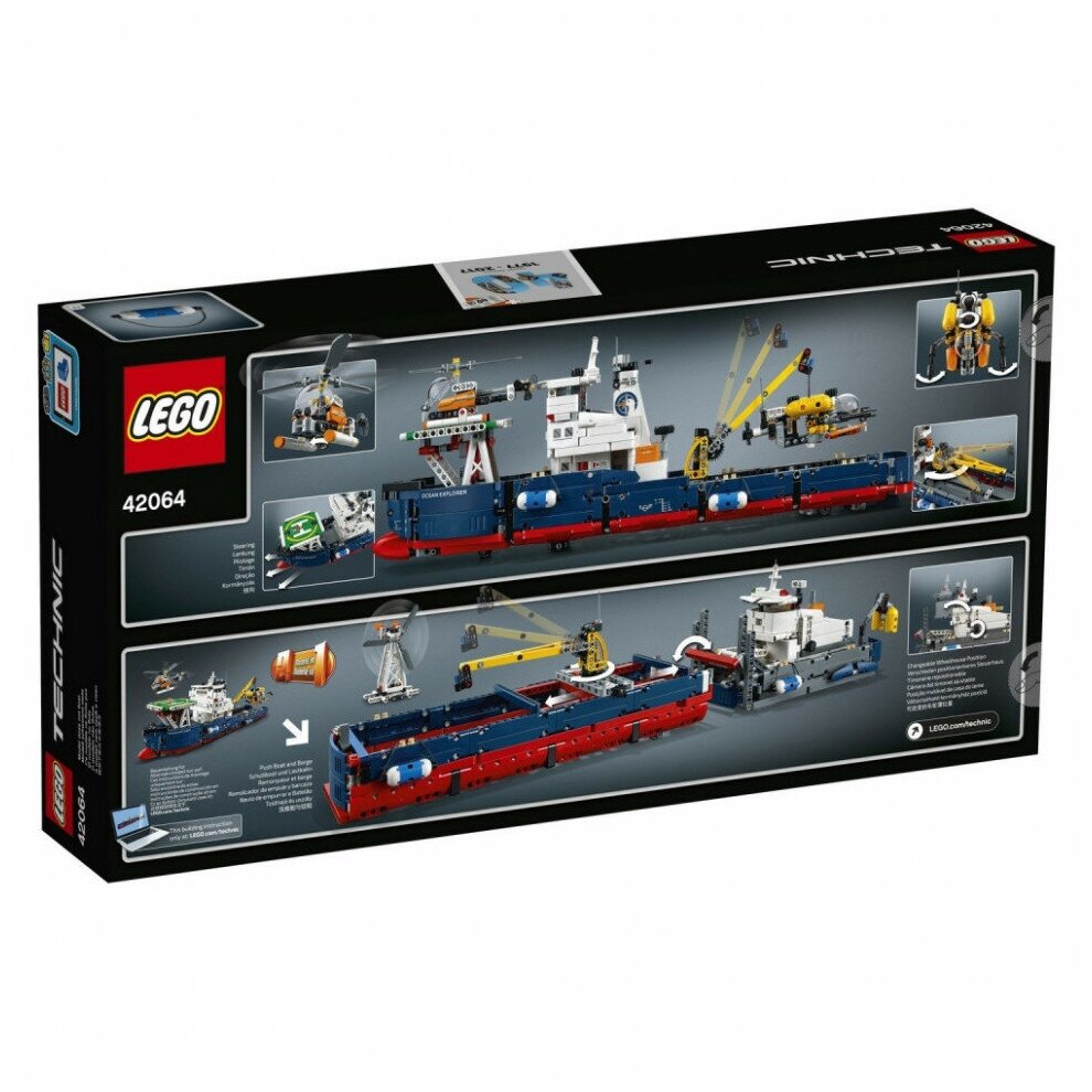 LEGO Technic Исследователь океана - набор, который сможет заинтересовать вашего ребенка. Маленькие детали собираются во внушительную по своим игровым возможностям модель корабля с тщательно проработанным корпусом, каплеобразным носом и двумя кранцами, большим капитанским мостиком, краном и посадочной площадкой, а также подводной лодкой и вертолетом. Скорее отправляйся в путь навстречу неизведанному морю, а после окончания миссии можешь перестроить эту модель в мощный буксир и баржу.