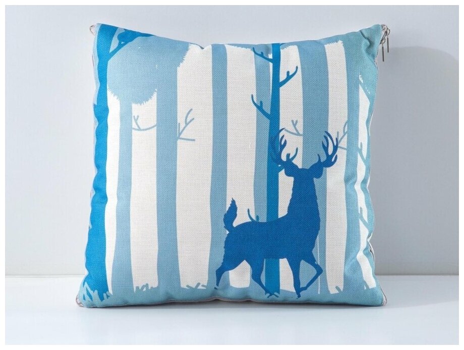 Чехол подушки выполнен из имитирующий лен ткани с печатным рисунком с одной стороны и без рисунка с другой. Плед-одеяло — из мягкой микрофибры цвета кофе с молоком с наполнителем из полиэфирного волокна. Размер в виде подушки 48х48 см, в виде одеяла — 140х200 см.