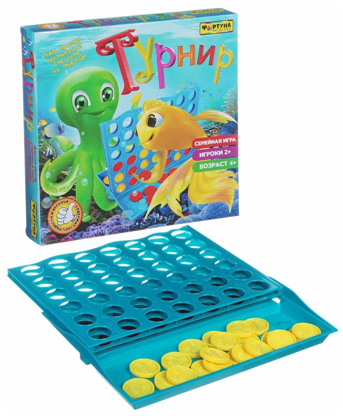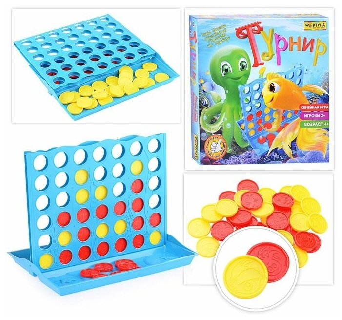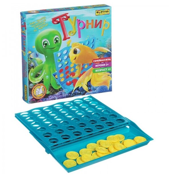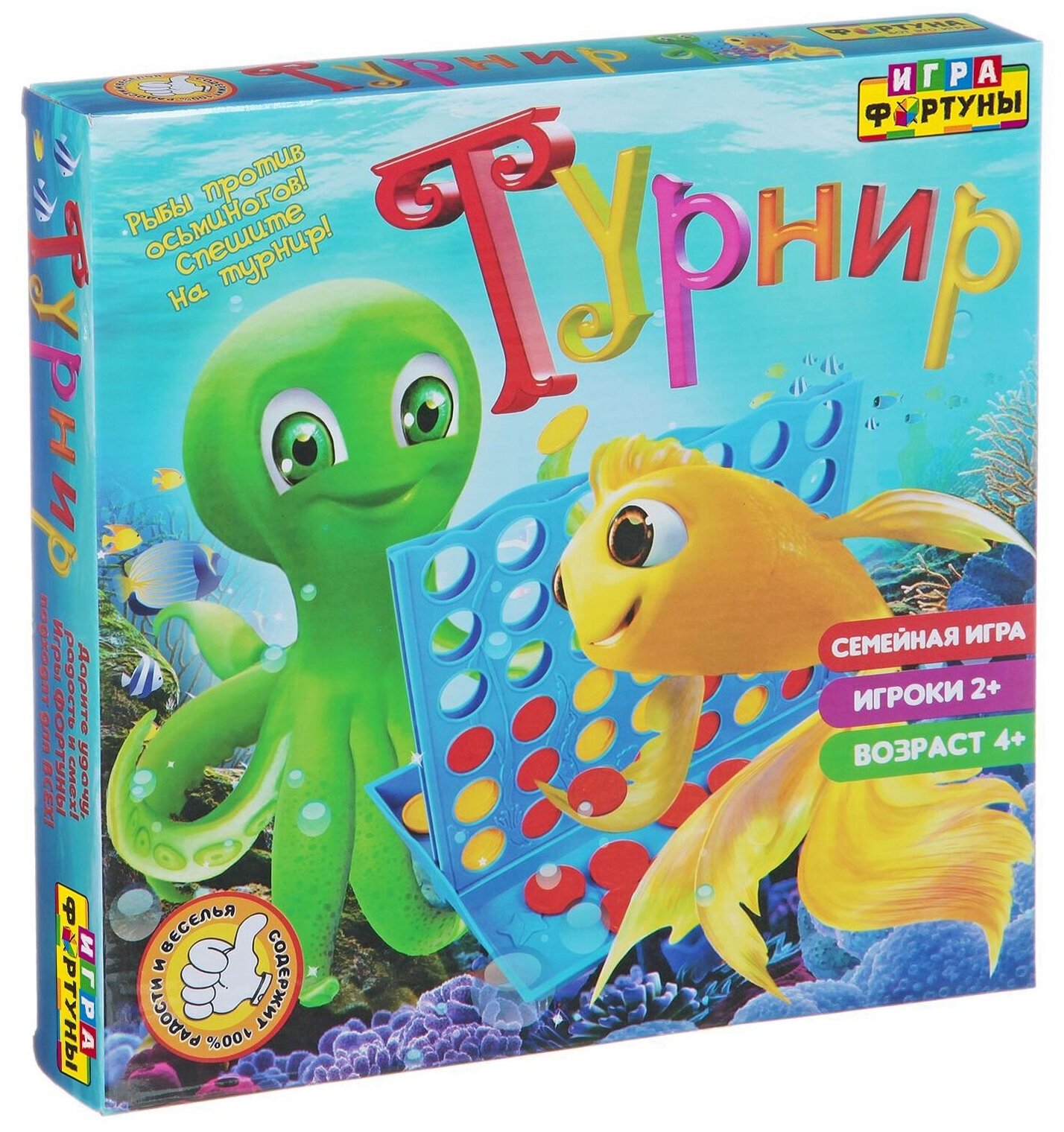 Игра настольная Турнир - увлекательный способ провести вечер в компании своих родных и друзей. Юным игрокам предстоит поделиться на две команды рыб и осьминогов для того, чтобы определенным образом взаимодействовать с игровым полем и разноцветными фишечками. Доступная инструкция расскажет ребяткам о правилах игры, в ходе которой они не только разовьют коммуникационные навыки, но и получат массу удовольствия.