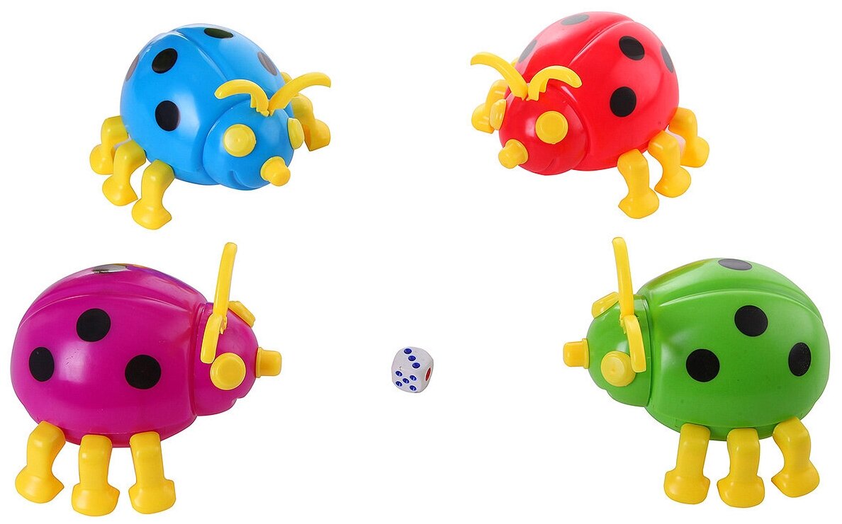 Цель игрысобрать первым божью коровку, которая должна состоять из 1 тела, 1 головы, 1 носика, 2 усиков, 2 глаз и 6 ножек. В процессе игры каждый игрок бросает кубик по очереди, добавляя ту или иную часть божьей коровки в зависимости от выпавшей цифры. Только одна часть тела может быть добавлена после каждого броска кубика. Если выпала цифра 2, а в Вашей божьей коровки уже есть голова, то нужно передать ход другому игроку и дождаться вновь своей очереди. Игрок, которому удалось первым собрать полностью божью коровку, становится Победителем.
