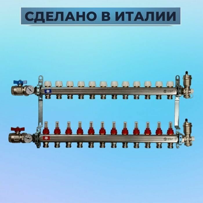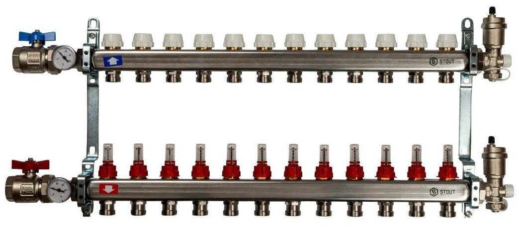 Блок коллекторный Stout SMS 0907 000012 1" x 3/4" 12 отводов с расходомерами
