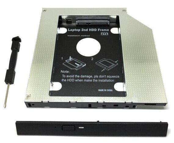 | Дополнительно | Переходник, позволяющий установить HDD формата 2.5 вместо оптического привода Совместимость: SSD и HDD формата 2.5, любой ноутбук с оптическим SATA приводом |
