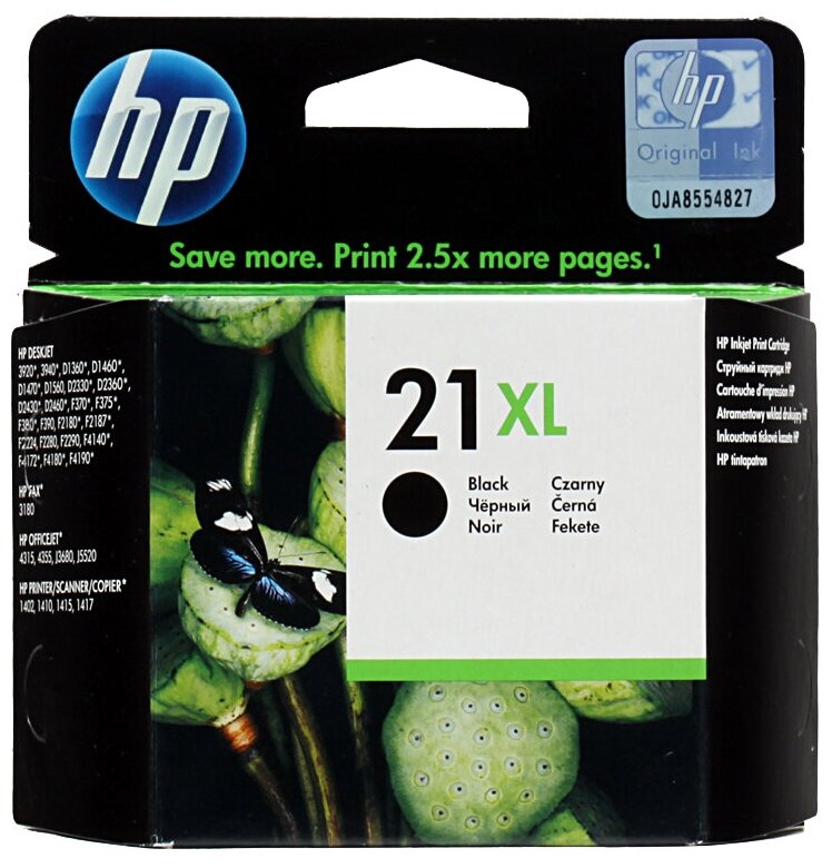 Струйные картриджи HP 21XL с черными чернилами предназначены для активной печати при меньшем количестве замен. Получайте больше отпечатков с насыщенным черным текстом лазерного качества и экономьте деньги.