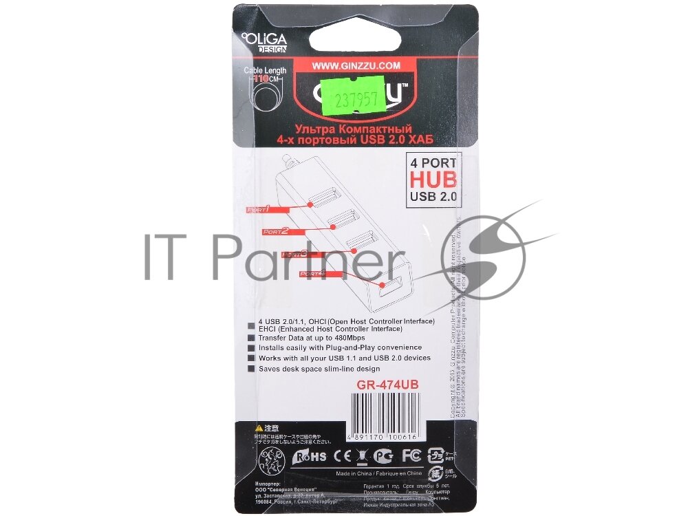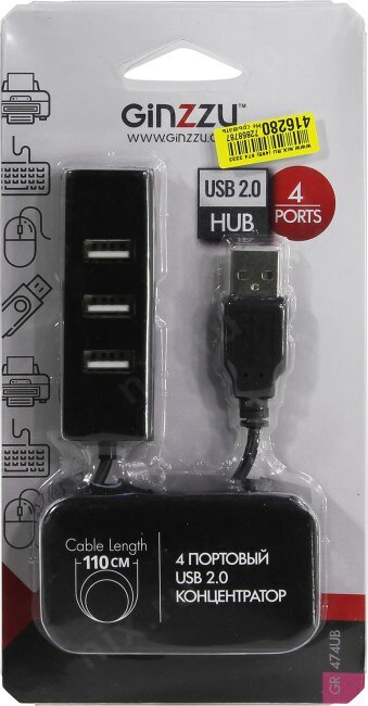 концентратор USB 2.0 Ginzzu GR-474UB