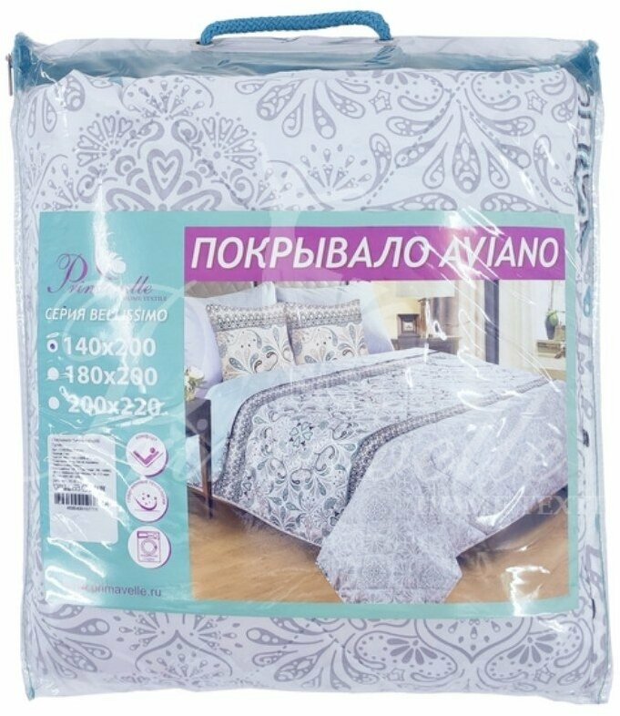 Размер: 180х200 см Состав: 100% п/э, макософт Двустороннее, ниточная стежка Упаковка: пвх сумка. Покрывало Грейс - легкий способ оживить и дополнить Ваш интерьер. Элегантные серо-голубые оттенки помогут добавить свежести. Покрывало выполнено из практичной ткани Макософт высокой прочности и не требует особого ухода. Этот гигроскопичный и воздухопроницаемый материал дополнительно проходит специальную брашт-обработку, благодаря чему имеет приятную на ощупь, бархатистую фактуру. Также важным преимуществом является особо прочное крашение, покрывало надолго сохранит свежесть и яркость красок.