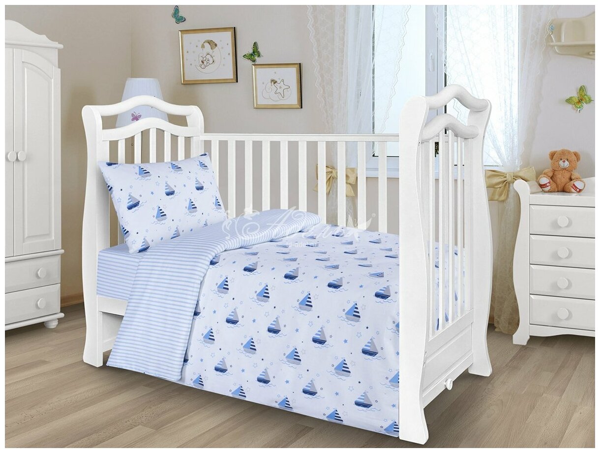 Постельное белье в детскую кроватку. Размеры постельного белья: простыня 120х60 борт 20 пододеяльник 140х107 наволочка 60х40 1штПоплин – уютная, эстетичная и комфортная ткань с великолепными эксплуатационными характеристиками, подходящими для создания спальных комплектов. Необычное плетение ткани позволяет добиться отличной плотности полотна, но в тоже время, оно получается гладким и мягким. Ткань из поплина хорошо пропускает воздух и влагу, не деформируется при стирке, не линяет и практически не мнется.Плотность: 105 гр/кв. м Расположение рисунка на наволочках не всегда полностью совпадает с рисунком на картинке! Это несоответствие не расценивается как брак или некондиция.