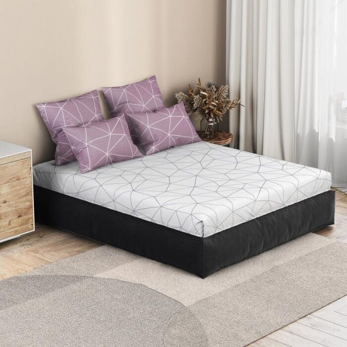 Представленный комплект выполнен из поплина — плотной хлопковой ткани. Она отличается высокой прочностью и износостойкостью. Из особенностей модели: