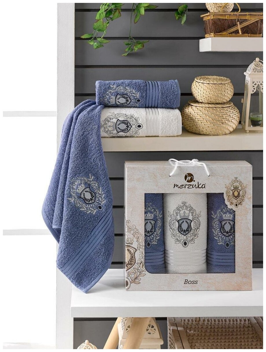 Сервис сравнения цен СкидкаГИД предлагает сравнить цены на товар «Полотенце Boss цвет: темно-голубой (50х80 см - 2 шт 70х130 см) Oran Merzuka (orm393514)»