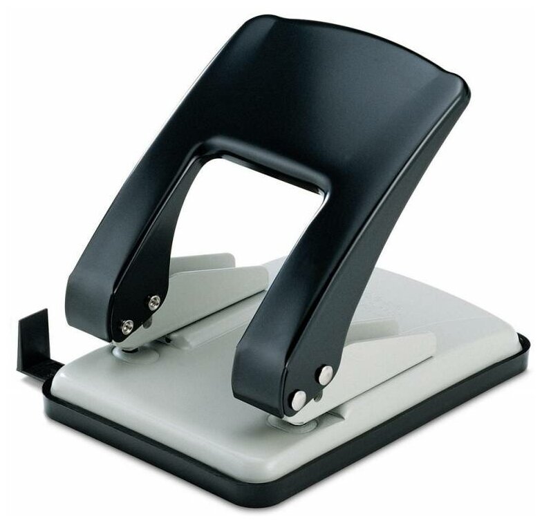 Надежный металлический grblack с фиксацией в закрытом положении предназначен для пробивания отверстий в бумаге. Оснащен выдвижной линейкой с делением на форматы, которая позволяет соблюдать одинаковый отступ от края документа. Съемное пластиковое основание служит удобным резервуаром для конфетти. Дырокол пробивает стопку из 40 листов стандартной плотности, образуя 2 отверстия диаметром 6 мм с расстоянием 80 мм.