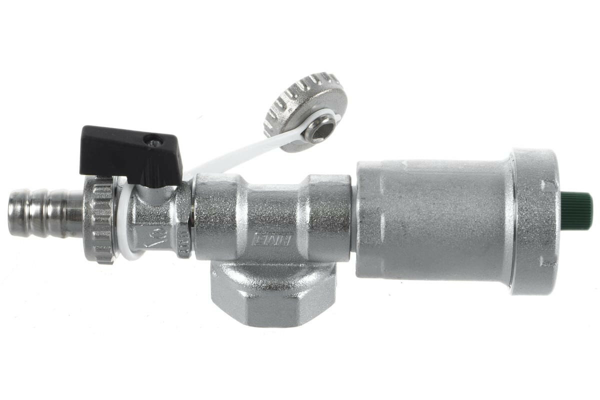 Узел для коллектора FAR 1" ВР представляет собой концевой фитинг, изготовленный из хромированной латуни, оборудованный автоматическим воздухоотводчиком и сливным краном с крышкой. Выполняет фукции опорожнения систем водоснабжения или отопления, а также автоматического удаления лишнего воздуха из системы. На концах крана имеются штуцер для подключения шланга и заглушка. Снабжён пластиковой ручкой для защиты от ожогов.