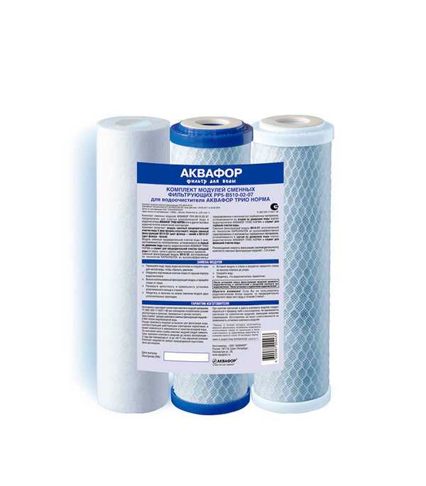 Комплект сменных модулей Аквафор Трио Норма. Сохраняет минеральный баланс воды. Подходит к группе водоочистителей Аквафор Трио или другим бытовым водоочистителям аналогичной конструкции.