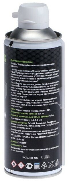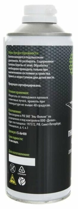 В первую очередь брал из-за состава, негорючий. Плюс, большой объем и мне хватает на две полноценные чистки техники дома. Струя воздуха мощная, давление в баллончике резко не падает.