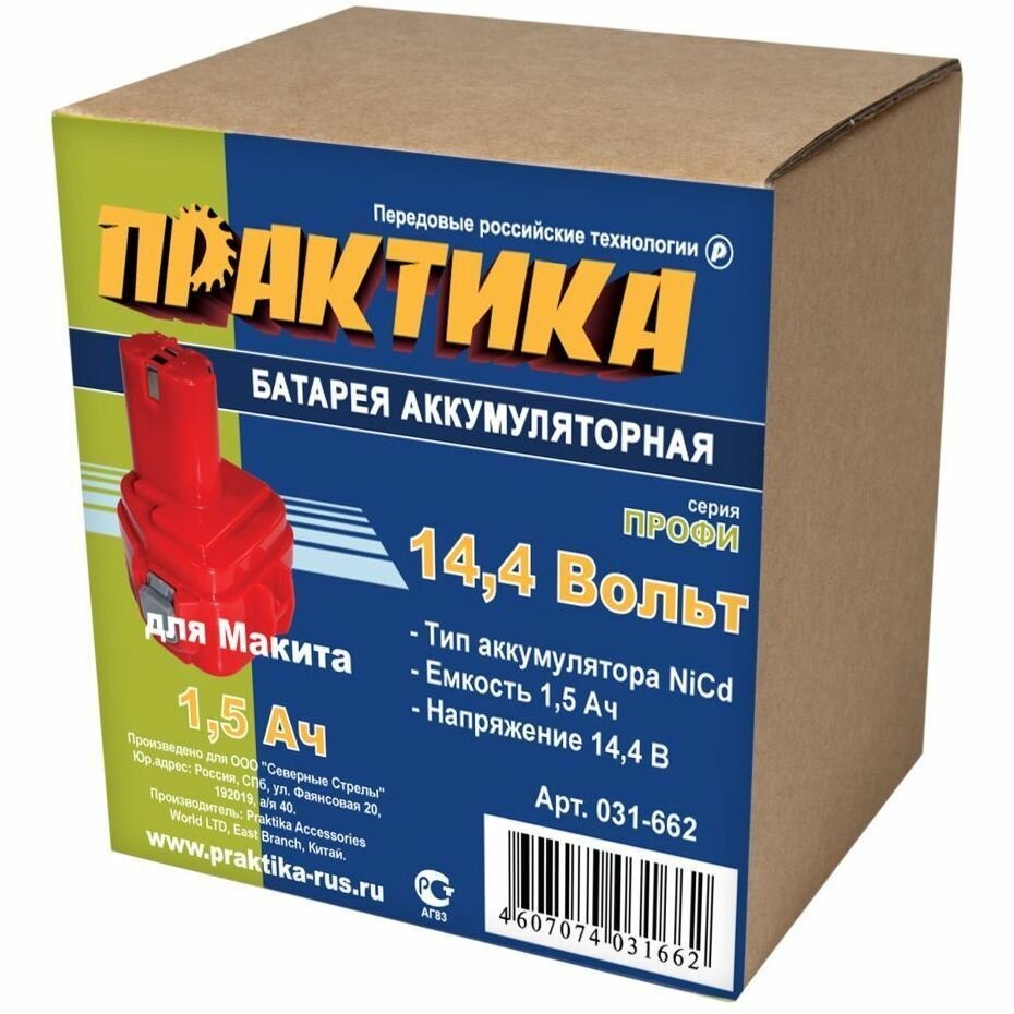 | Описание | Аккумулятор ПРАКТИКА 031-662 14.4В 1.5Ач NiCd для MAKITA Поставляется в коробке Для акк. дрели + Для фонаря + |