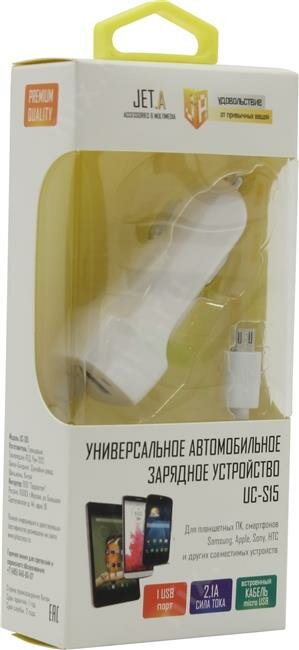 Автомобильное зарядное устройство Jet.A 2.1А 1 USB с кабелем micro USB белый UC-S15
