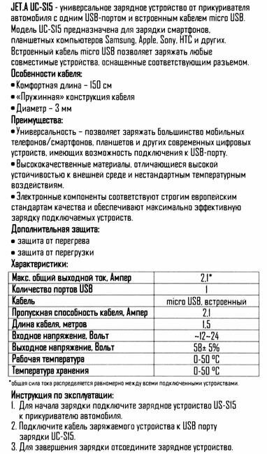 На сегодняшний день товар «Автомобильное зарядное устройство Jet.A 2.1А 1 USB с кабелем micro USB белый UC-S15» можно купить с кешбеком в 2 магазинах: E2e4online, Яндекс.Маркет