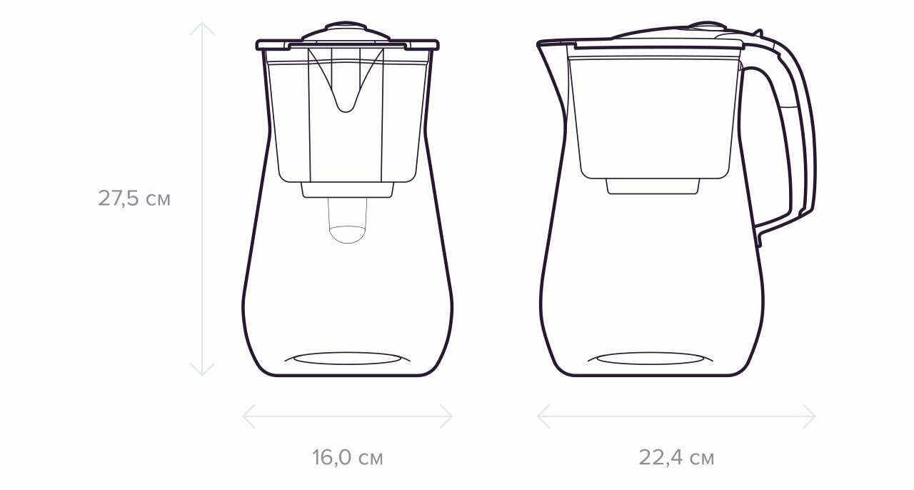 Как и любой фильтр-кувшин, не требует подключения к водопроводу и может использоваться в любом, удобном для Вас месте.