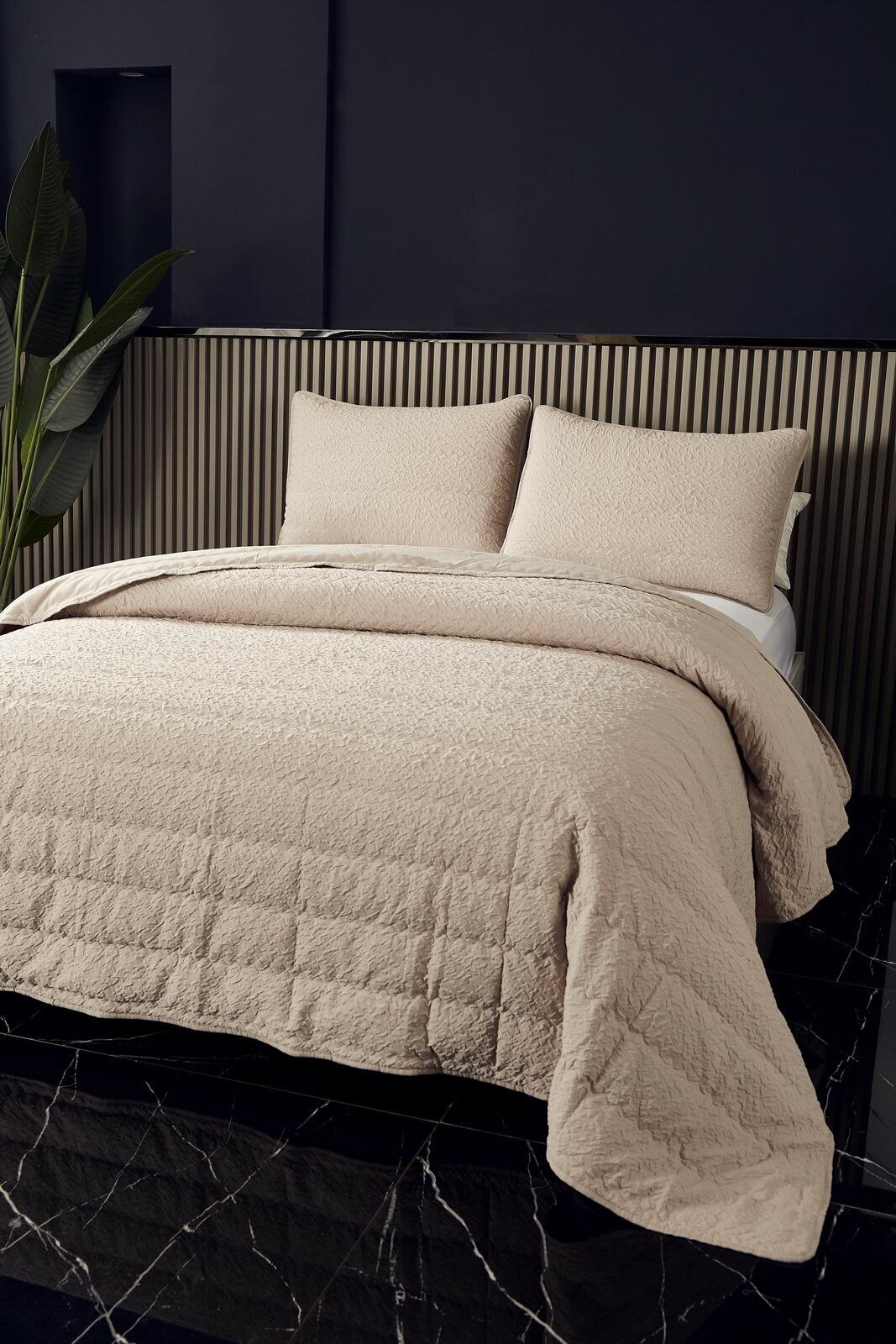 Создать уют в комнате поможет красивое, подобранное по стилю и цвету покрывало. Обратите внимание на коллекцию покрывал Надин. Покрывала выполнены в сдержанных тонах: беж, серый, молоко, пепел роза, пудра или мокко. Такая классическая гамма помогает использовать покрывала практически в любом интерьере. Вам нетрудно будет подобрать и другие аксессуары в тон, например, шторы или коврики.Стеганые покрывала Надин имеют интересную «жатую» структуру, благодаря которой они выглядят живо и оригинально. Они украсят любое помещение.Изделия прочные и функциональные, хлопок хорошо впитывает влагу, а вискоза придает изделию форму. При условии правильного ухода покрывало прослужит долгие годы, не теряя своей формы и цвета. Стирать покрывала Надин нужно в машине в режиме бережной стирки или вручную, а затем хорошо просушивать.Такое покрывало с наволочками может послужить очень практичным подарком, оно уже тщательно упаковано и готово к переезду к своему владельцу.