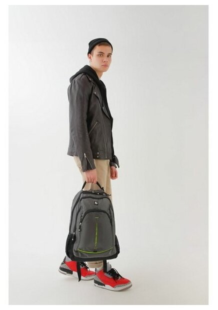 - Серый цвет с салатовой вставкой делает эту модель универсальной и практичной.