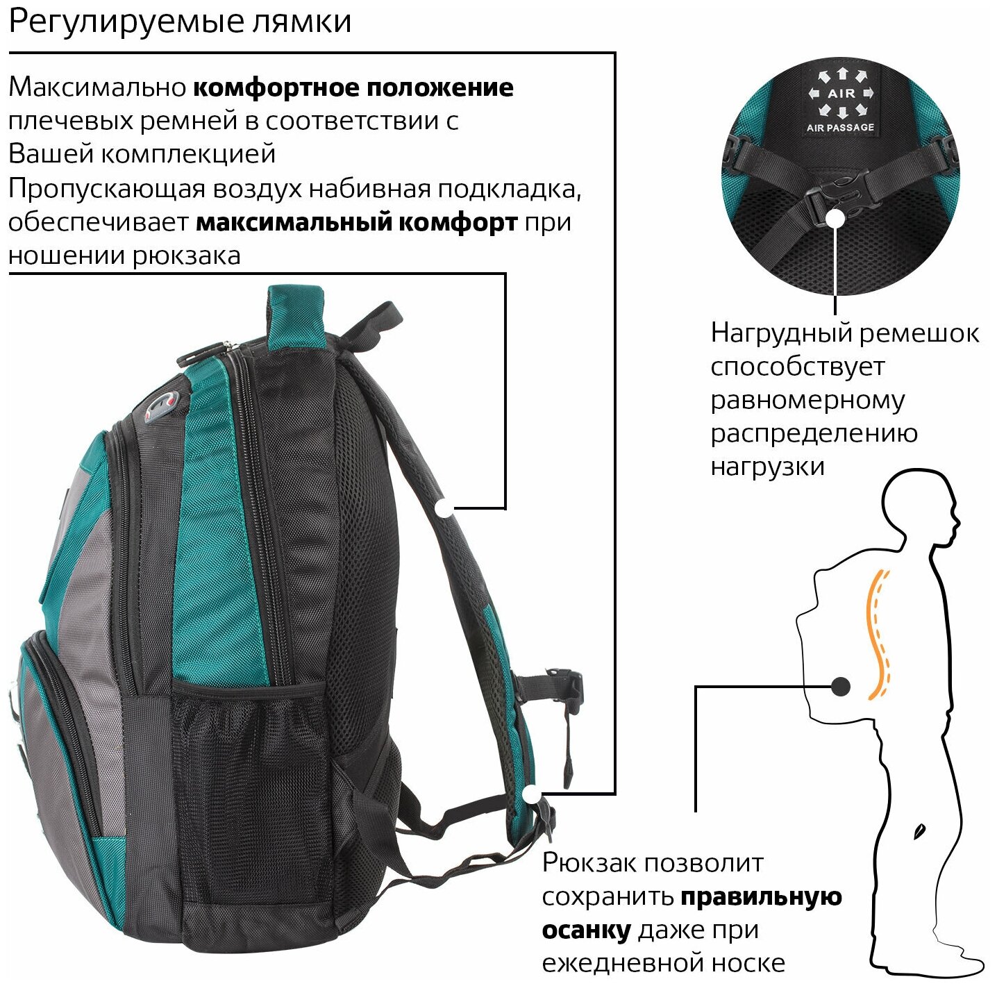 - Укрепленная вентилируемая спинка и регулируемые плечевые ремни анатомической формы обеспечивают максимальный комфорт при ношении рюкзака.