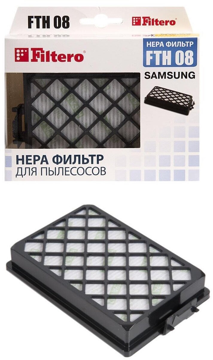 | Прочие особенности и свойства | Фильтр Filtero FTH 08 уровня фильтрации НЕРА Н 12. Препятствует выходу мельчайших частиц пыли и аллергенов из пылесоса в помещение. hepa фильтр samsung немоющийся. Подлежит замене, согласно рекомендации производителя пылесосов - не реже одного раза за 6 месяцев. |