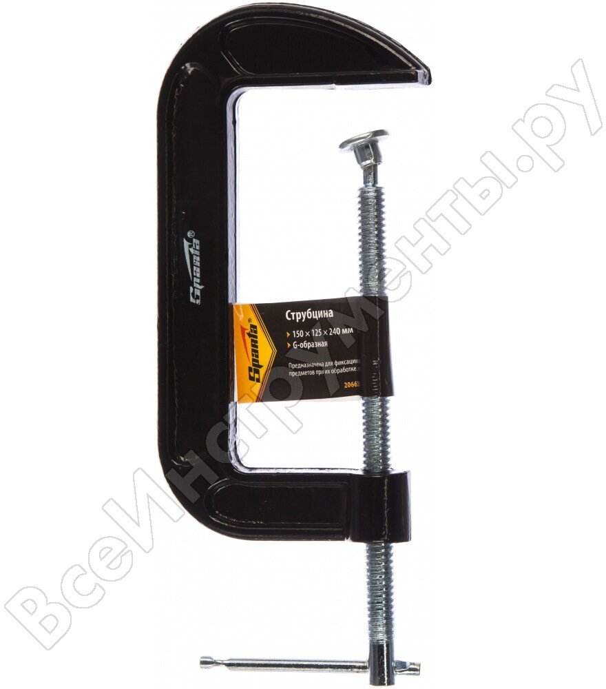 | Прочие особенности и свойства | Тип струбцины:G-образная Рама покрыта цветным лаком. Винт со специальным зажимом и крупной червячной резьбой позволяет надежно фиксировать предметы. |