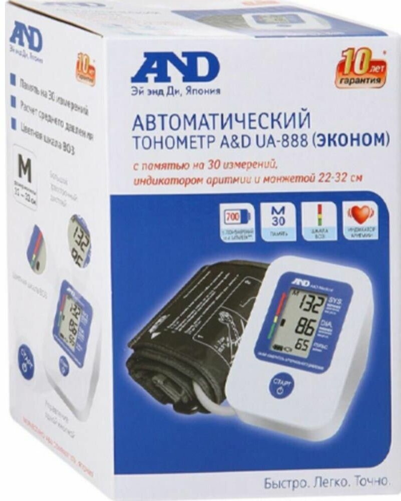 | Дополнительная информация | автоматический тонометр UA 888 - в каждый дом для регулярной диагностики артериального давления; валидирован по протоколу ESH; гарантия на основной блок в корпусе 10 лет; прошёл валидацию точности по протоколу ESH (Европейское общество по гипертонии); не включает в себя чехол и сетевой адаптер |
