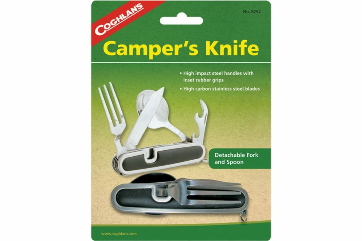Легкий, функциональный и надежный нож COGHLAN'S станет вашим незаменимым помощником. Множество различных функций поможет Вам справиться с любой непредвиденной ситуацией. Кольцо для ключей позволит всегда держать нож под рукой. Особая разборная конструкция ножа позволяет сделать из него два отдельных столовых прибора: вилку и ложку.