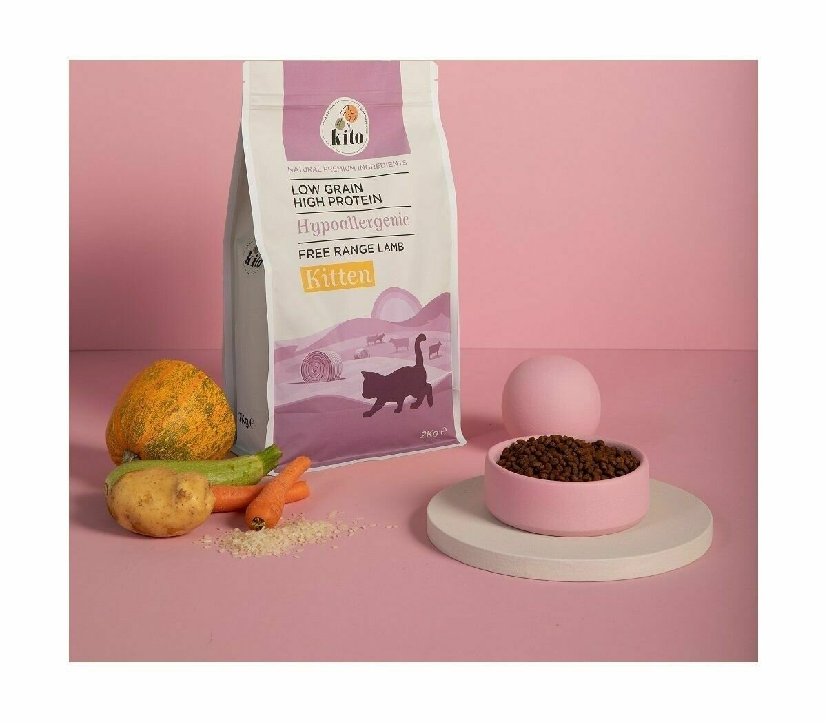 Корм Kito - отличное начало для долгой жизни котенка. Идеальный баланс ингредиентов, витаминов и минералов обеспечивают развитие мышц и укрепление иммунной системы питомца, снабжая его энергией, которая так необходима для активных игр. Обогащенный полезными аминокислотами и ненасыщенными жирами Kito помогает поддерживать здоровье кожи и шерсти. Натуральный состав, свежие овощи и мясные ингредиенты высшего качества придают корму невероятный вкус и аромат! Мясо, используемое в кормах Kito проходит обработку по специальной системе FMIS (Fresh Meat Injection System), что позволяет увеличить его усвояемость до 99%.