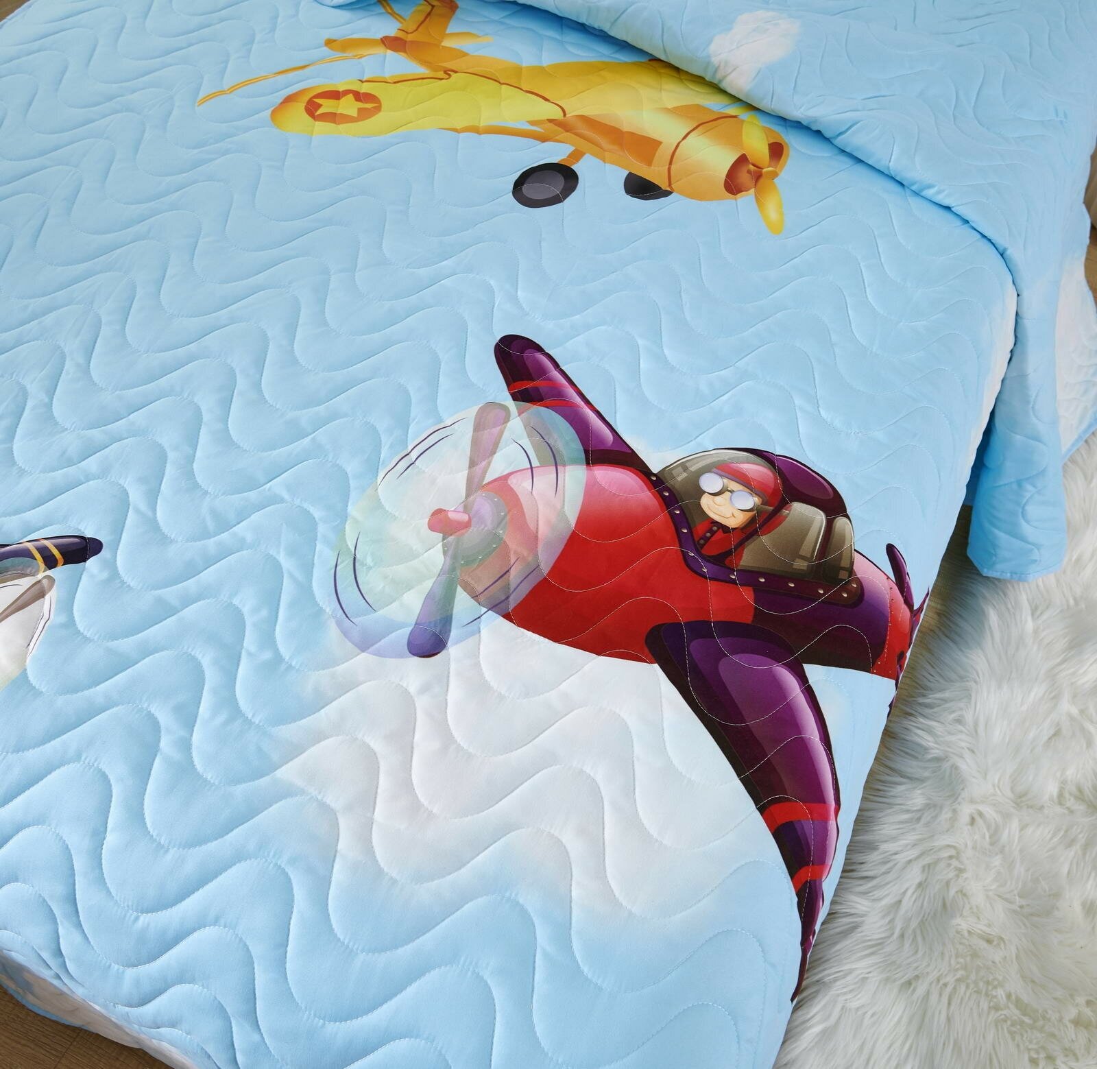 Детское покрывало Самолеты цвет: голубой (120х200 см) Sofi de Marko (sofi753757) (размер: 1.5-спальный)