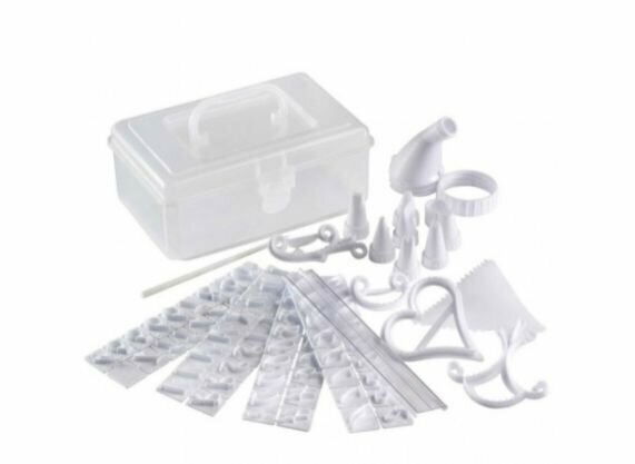 | Комплектация | Аппликатор кондитерский (1 шт.) Кольцо (фиксатор для шприца и полиэтиленового мешочка) (1 шт.) Мешочки для крема и глазури одноразовые (15 шт.) Насадки для кондитерского шприца: - насадка для создания лепестков (1 шт.) - насадка для создания полос (1 шт.) - насадка для создания листочков (1 шт.) - насадка для создания цветов (1 шт.) - насадка-звездочка (1шт.) - круглая насадка (1 шт.) - сетчатая насадка (1 шт.) Держатель для букв и цифр (1 шт.) Формы-трафареты для создания контура узоров: - трафарет в виде буквы «С» - 1шт. - трафарет в виде сердечка (1 шт.) - трафарет в виде лилии (1 шт.) - трафарет в виде лозы (1 шт.) Шпатель кондитерский (1 шт.) Палочка (1 шт.) Трафареты для цифр и букв (английский алфавит) (67 шт.) |