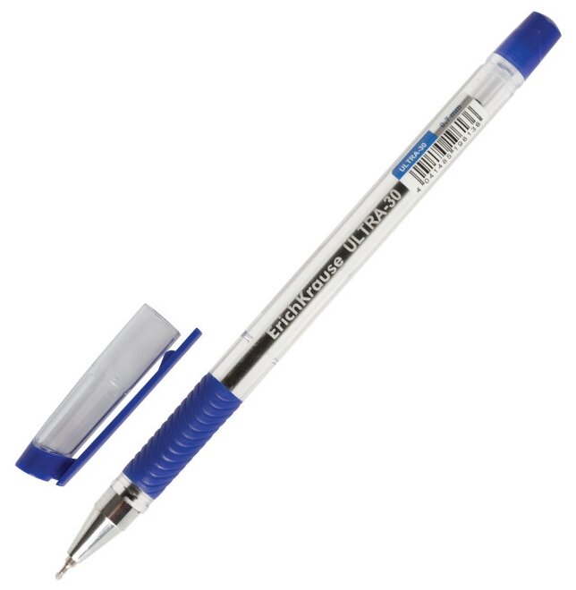 Многоразовая шариковая ручка Erich Krause Ultra L-30 в прозрачном пластиковом корпусе имеет прочную металлическую оправу наконечника пишущего узла и защитный колпачок с держателем для кармана или документов. Чернила на масляной основе обеспечивают мягкие, плавные линии и не мажут при сильном нажатии, а удобная резиновая манжетка с рифленым тиснением препятствует скольжению пальцев, что гарантирует максимально комфортное использование ручки.