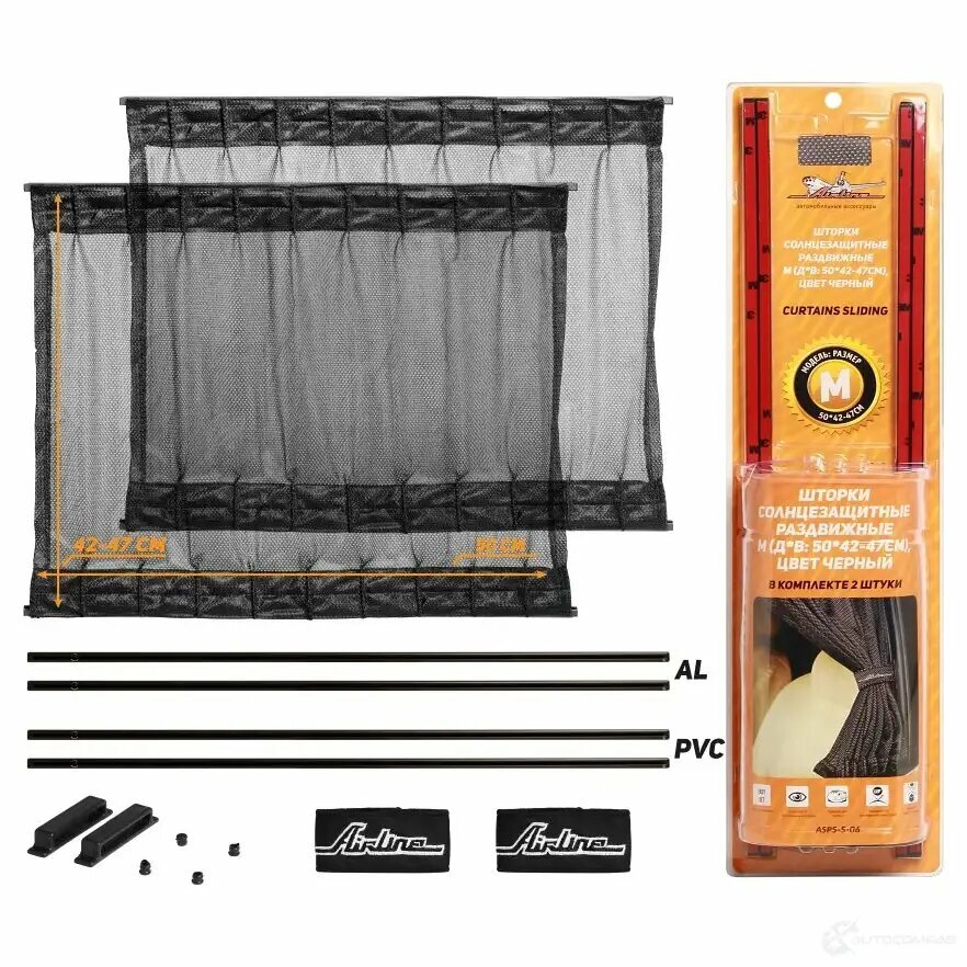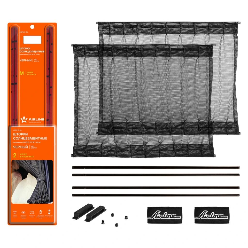 Шторки автомобильные солнцезащитные раздвижные Airline M (ДxВ: 50x42-47см) цвет черный ASPS-S-06 (размер: 50х42-47см)