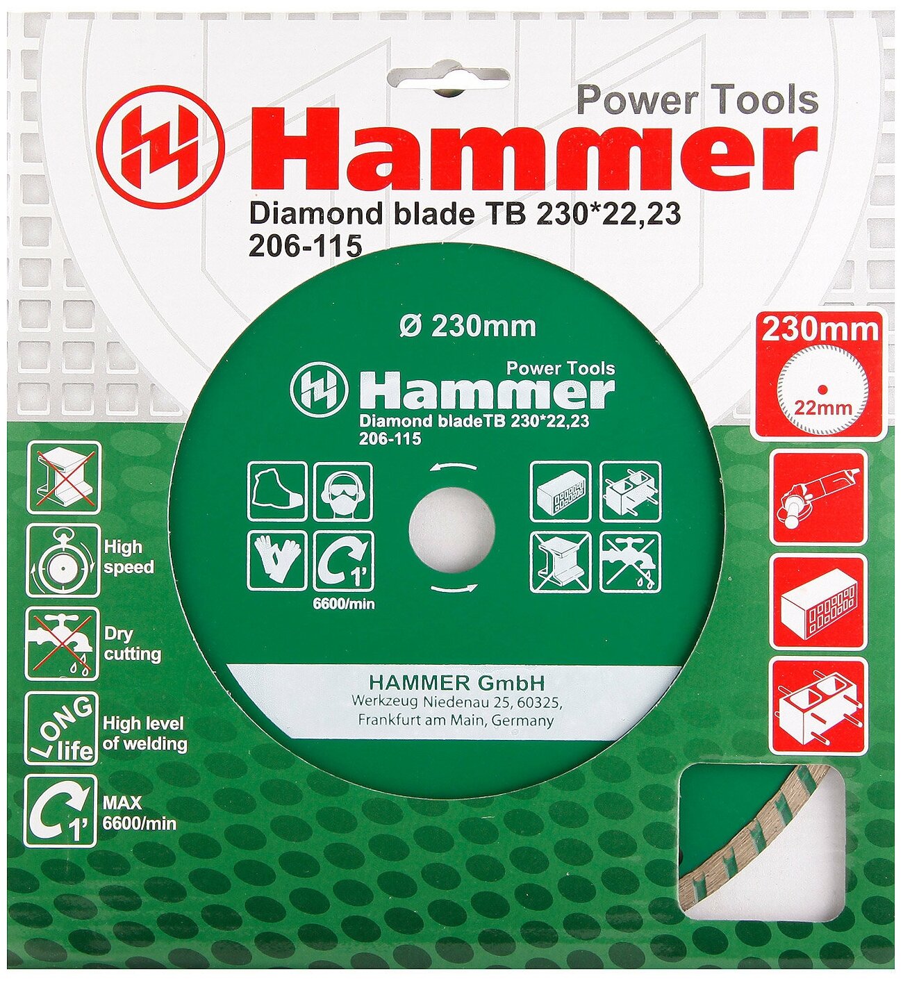 | Название на английском | Diamond disc Hammer Flex 206-115 DB TB 230*22мм turbo |