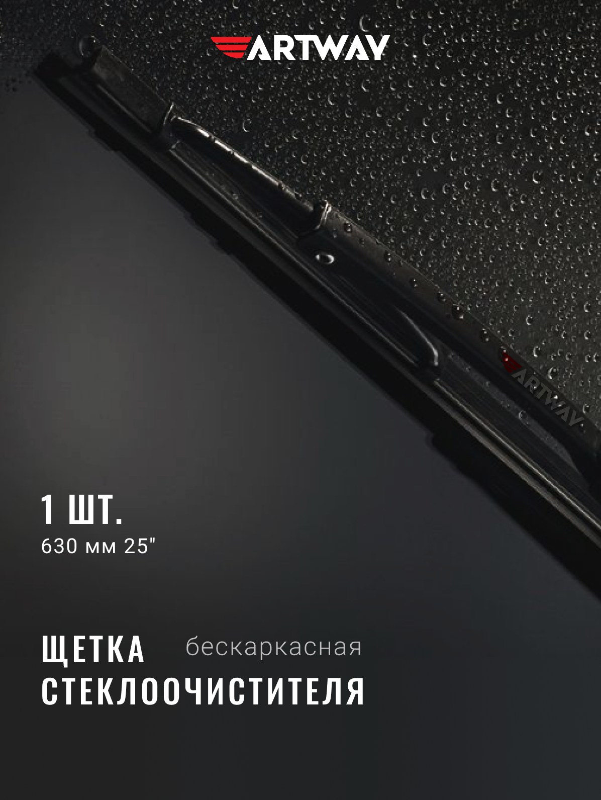 Щетка стеклоочистителя ARTWAY 630 мм (25") бескаркасная всесезонная резиновый спойлер горячий тефлон на чистящем лезвии 8 адаптеров AL-630
