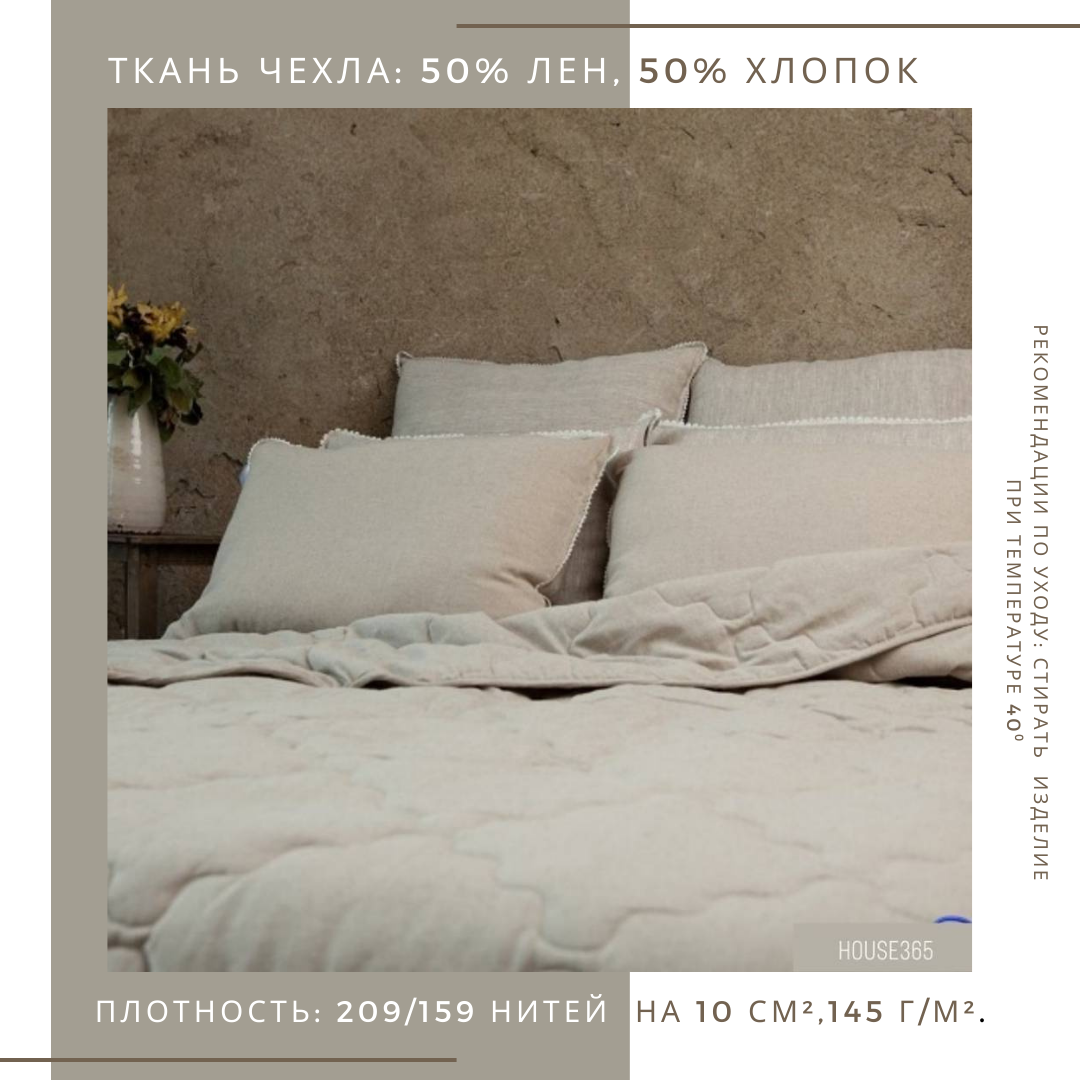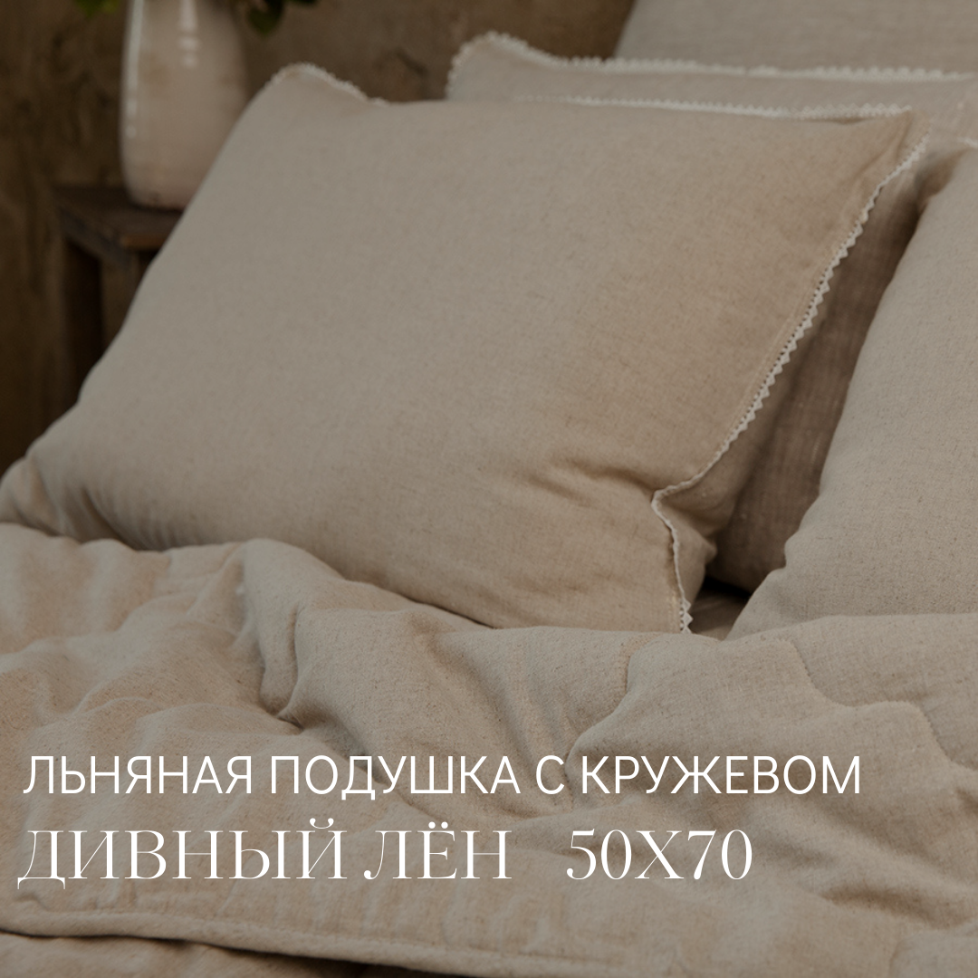 В качестве наполнителя для подушки серии "Дивный лён" используется льняное (проложено с двух сторон к ткани) и бамбуковое волокно (в центре). Ткань чехла выполнена из смеси льна и хлопка. Такая комбинация обеспечивает изделию исключительные антисептические свойства и абсолютную гипоаллергенность. Подушка идеально подходит для жарких летних ночей.