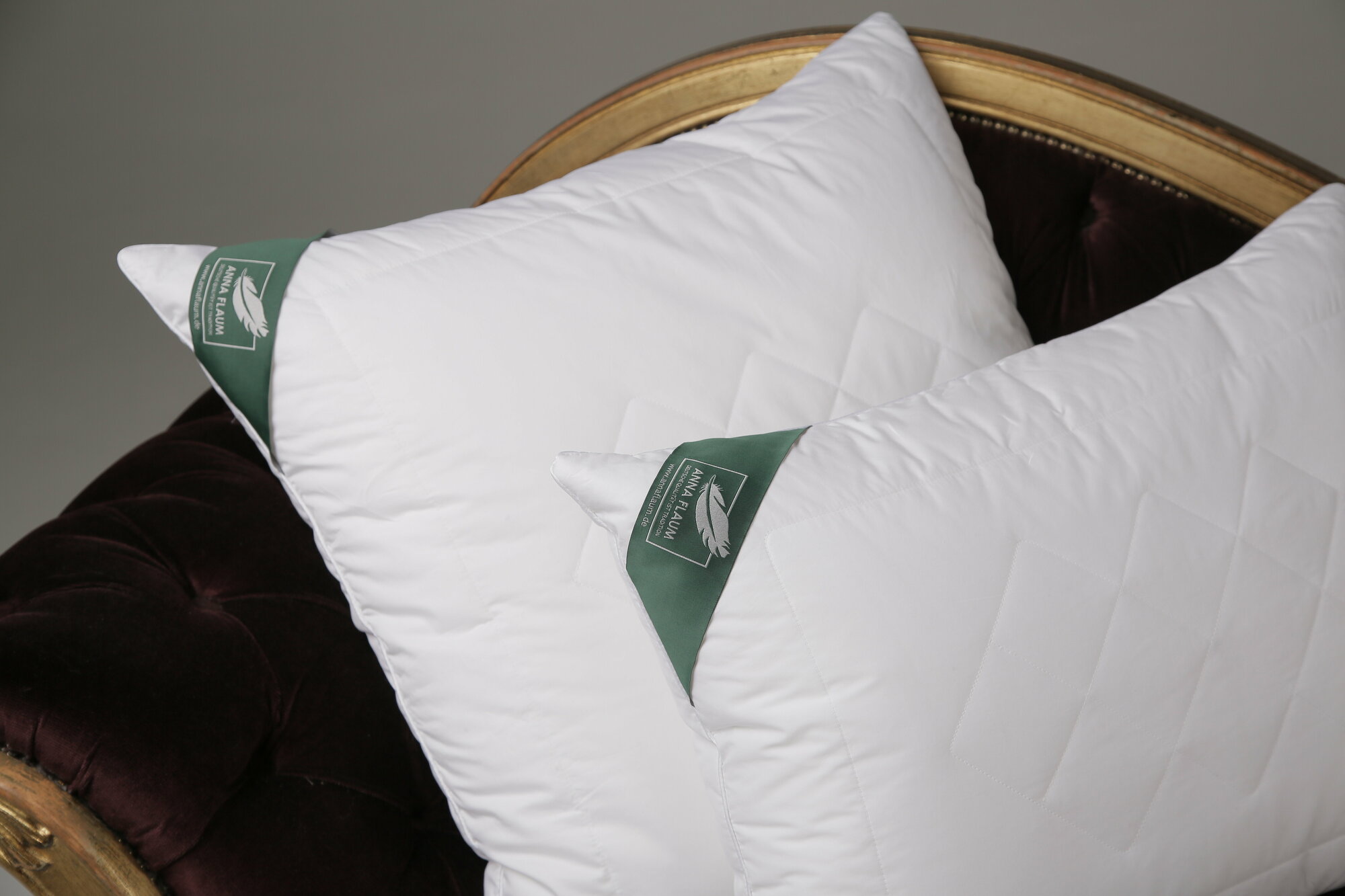 Подушки в коллекции Flaum BAUMWOLLE имеют регулируемую конструкцию – верхний чехол из мако-сатина, простеган вместе с наполнителем из хлопкового волокна. Внутри такой подушки расположена внутренняя наволочка с наполнителем из полого высокоизвитого силиконизированного волокна, позволяющая индивидуально регулировать степень упругости и высоту подушки самостоятельно.