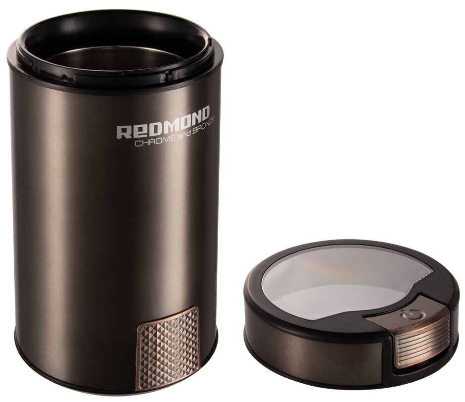 Кофемолка Redmond – новая элегантная модель с премиальным дизайном из уникальной серии Chrome & Bronze в корпусе из нержавеющей стали, оснащённая инновационным сверхострым ножом. Создавайте, словно очередной шедевр высокого искусства, свежий и ароматный кофе крупного, среднего или тонкого помола. Уверенно применяйте изысканный прибор для быстрого и приятного измельчения всевозможных специй, зёрен и орехов.
