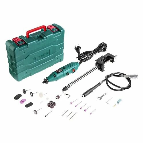 Гравер Hammer Flex MD135A предназначен для обработки деталей из пластика, дерева, металла посредством сменных насадок. Мощность электродвигателя 135 Вт позволяет расширить спектр применения гравера. Он заставляет двигаться шпиндель, цанговый зажим которого подходит для использования 41 насадки и имеет размеры 2,4 и 3,2 мм. Это позволяет подобрать оснастку самостоятельно в любом профессиональном магазине.