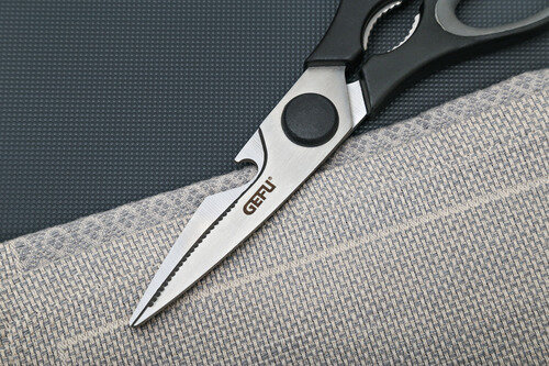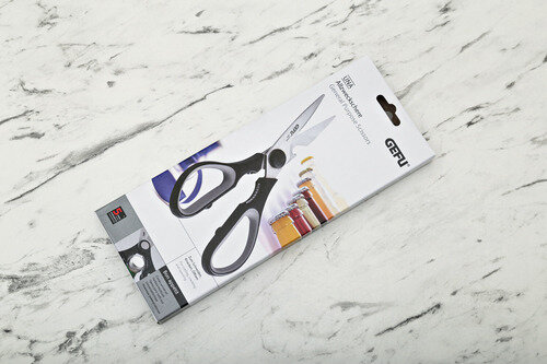 Хозяйственные ножницы Gefu оснащены режущей частью из высококачественной нержавеющей стали. Дополнительно оснащены приспособлением для открывания бутылок с крышками и приспособлением для отвинчивания пробок диаметром до 30 мм. Эргономичные рукоятки, выполненные из пластика черного цвета, удобны в эксплуатации. Можно мыть в посудомоечной машине.