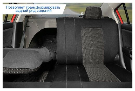 2 передних спинки 2 передних сиденья 1 задняя спинка 1 заднее сиденье 5 подголовников 3 молний на задней спинке 3 молний на заднем сидении Комплект крепежа для установки