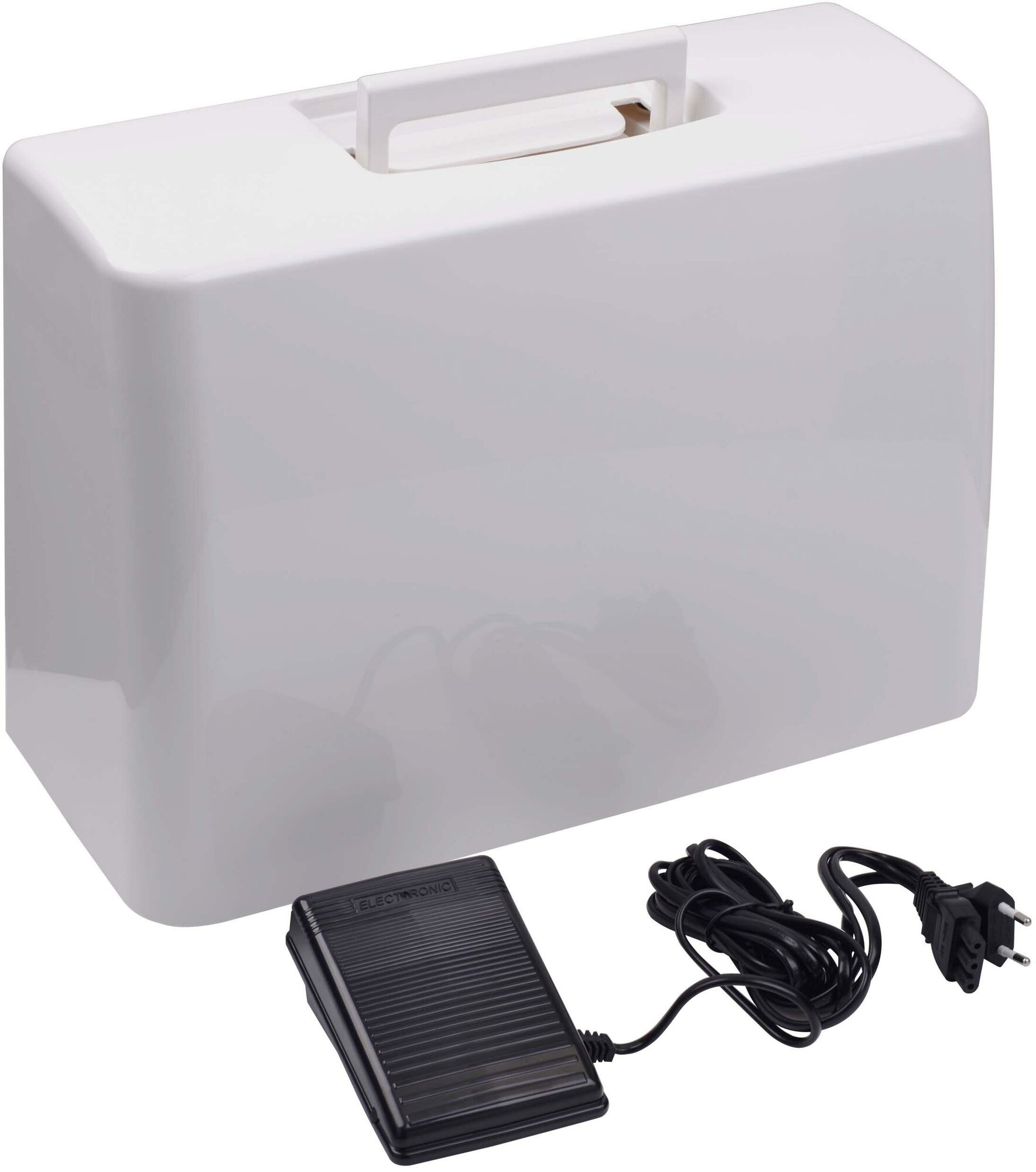 | Комплект поставки | лапка универсальная; лапка для выметывания петель; лапка для подрубки; лапка для вшивания молнии; вертикальная подставка под катушки; фетровая подкладка; направитель швов; вспарыватель; набор игл; педаль; отвертка; шпульки; щеточка для чистки; масленка; инструкция |