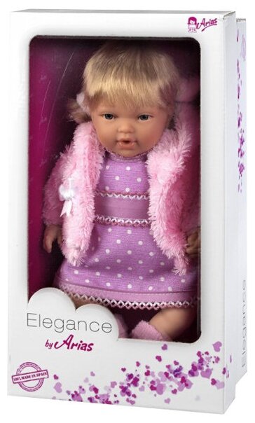 Кукла Arias Elegance в розовом платье - очаровательная малышка, высотой 28 см. Она станет центральной фигуры интересной игры в дочки-матери и наверняка понравится девочке.Кукла выполнена из мягкого винила с тщательной проработкой всех деталей